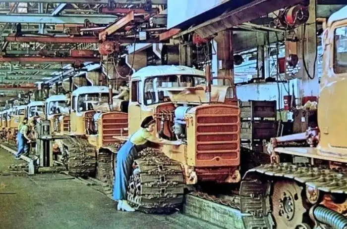 3. "Болотоходные тракторы ДТ-75Б* на левом конвейере сборочного цеха №1 ВгТЗ" 1970-е