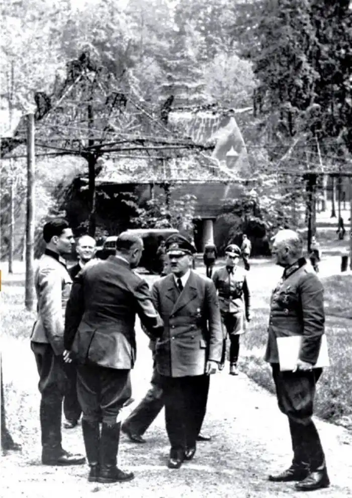 5. Клаус фон Штауффенберг (крайний слева) встречает Гитлера за 5 дней до попытки покушения на него, июль 1944 года.