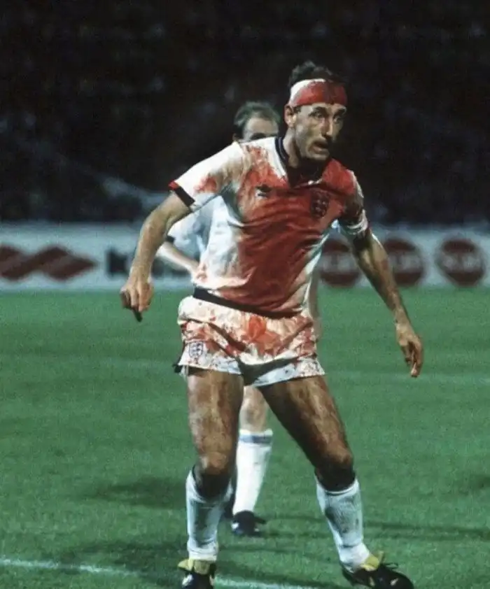 10. Терри Батчер в крови, после ранения головы, участвует в отборочном матче чемпионата мира против Швеции, 1989 год