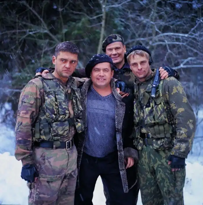 23. Давай за... Николай Росторгуев с актерами сериала «Спецназ», 2002 год