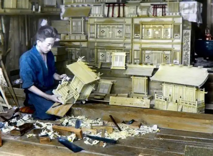 3. Мастер по изготовлению миниатюрных макетов домов за работой. Япония. 1889 год