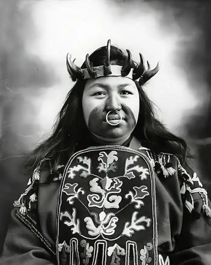4. Представительница индейского народа Тлинкит по имени Кау–Клаа в традиционном костюме, 1906 год