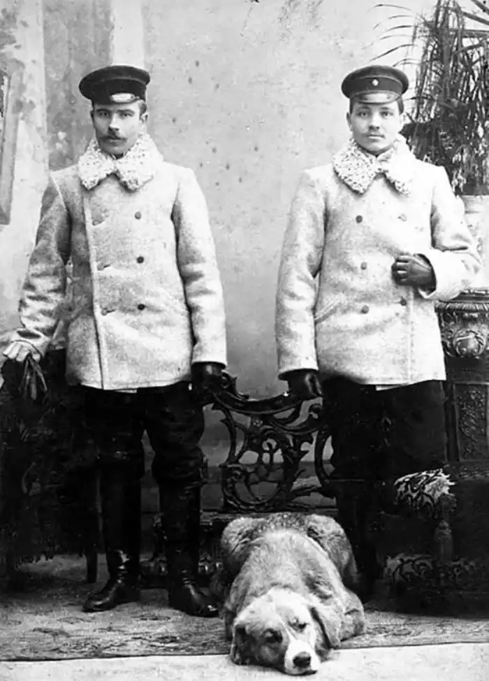 24. Российская Империя. Железнодорожные рабочие с собакой. 1910 год