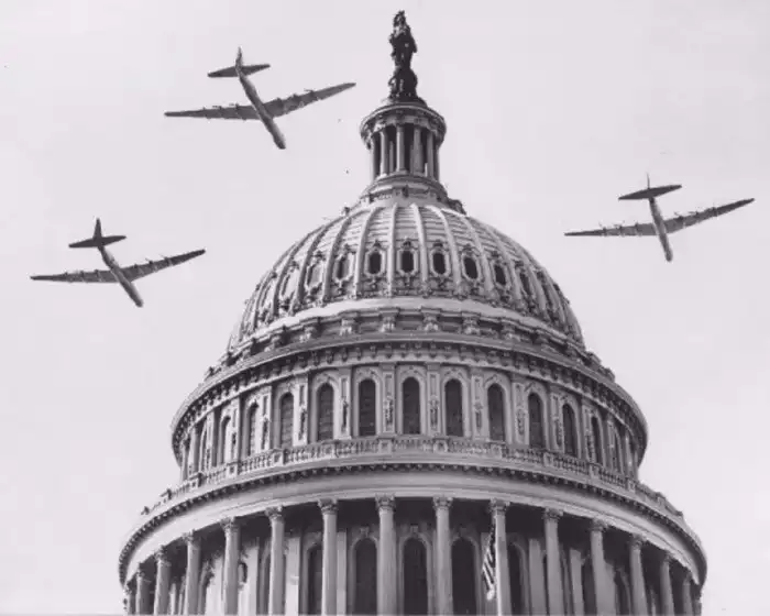 33. Самолет Convair B-36 пролетает над Капитолием на инаугурации Гарри С. Трумэна 20 января 1949 года