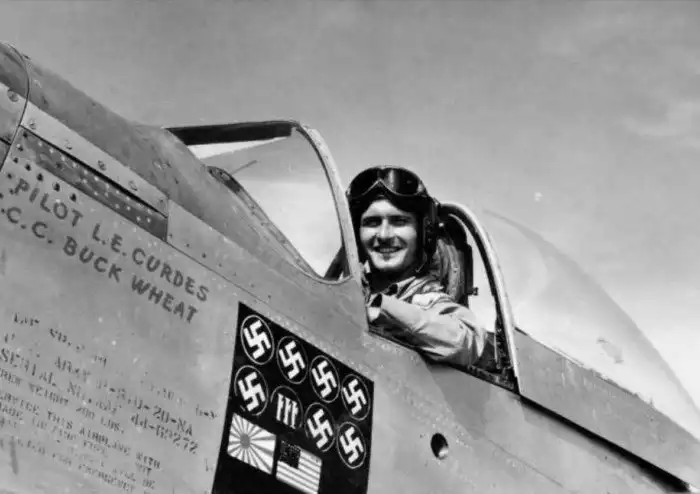 39. Американский пилот Второй Мировой войны Луис Кёрдс подбил десять самолётов, о чём говорят нанесённые на борт его «Мустанга» Р-51 знаки