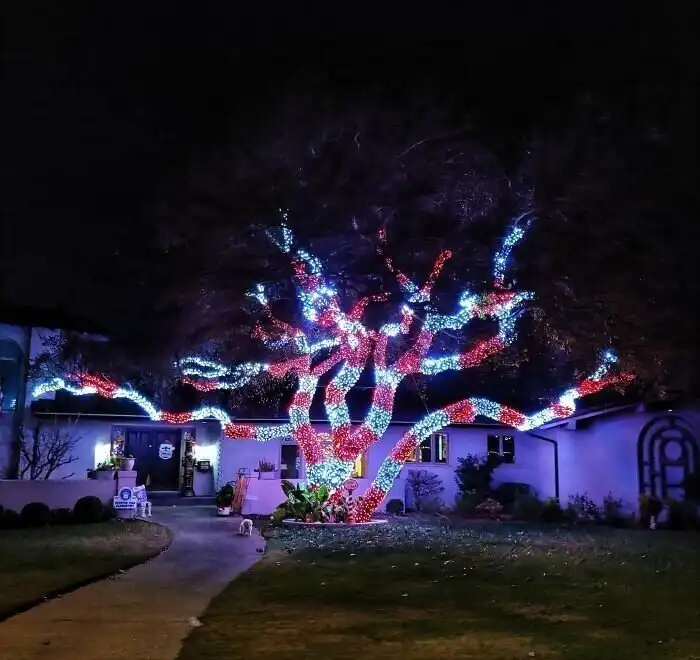 Даже поваленное ветром дерево может стать основой для новогодней декорации