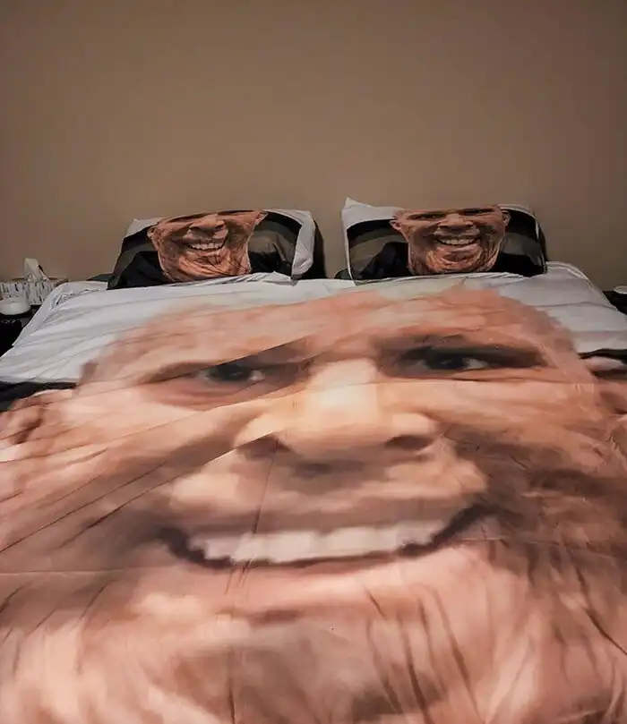 "Дочки подарили нам на Рождество постельное белье с моим портретом"