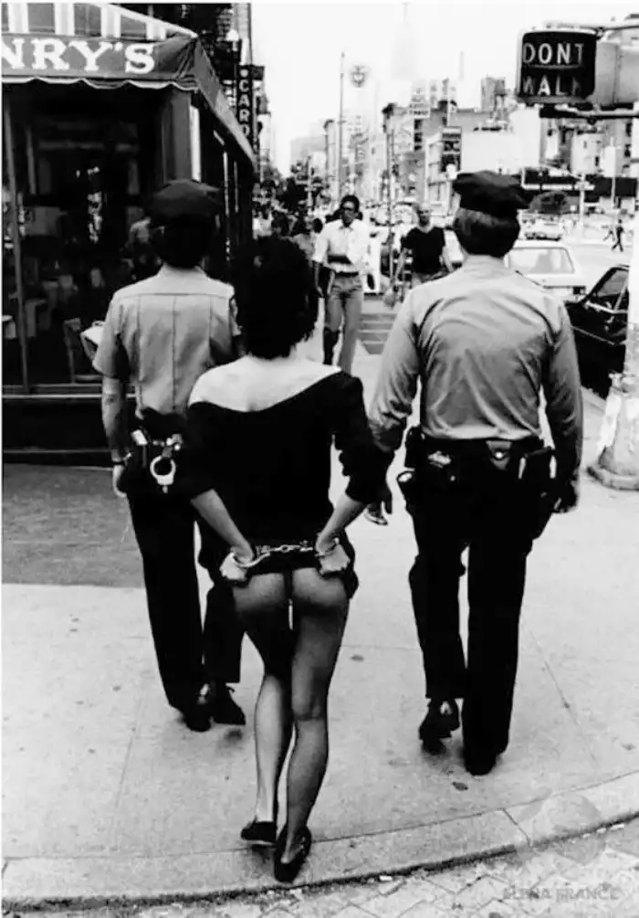 19. Американские полицейские заковали женщину-нарушительницу в наручники. Улицы Манхэттен в 1981 году. Нью-Йорк.
