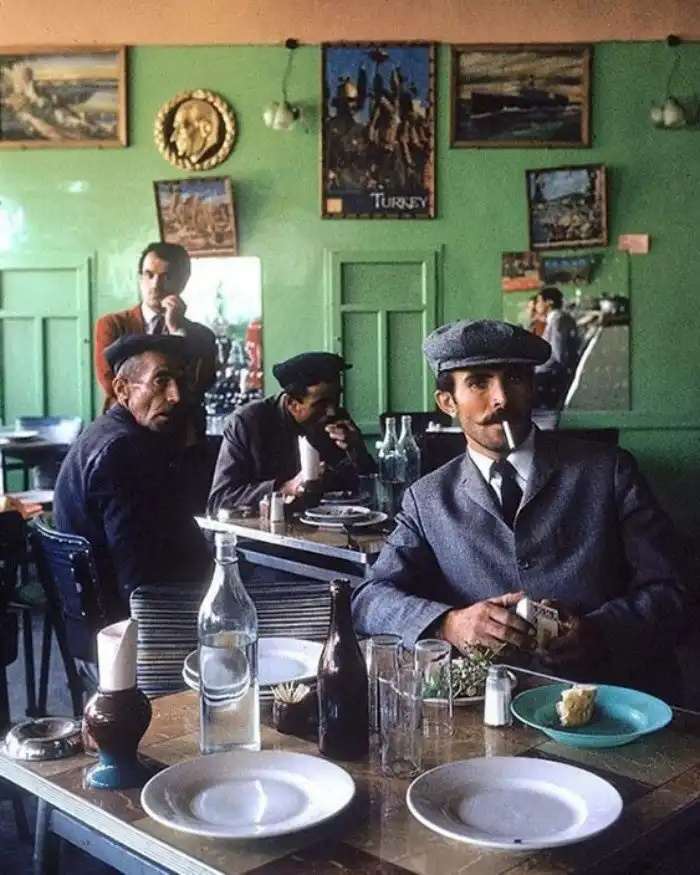 20. Турецкие мужчины обедают в ресторане «Локанда» в Невшехире, 1970 год. Фотография Билла Рэя