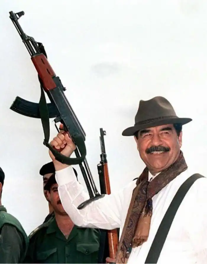 33. Саддам Хусейн с автоматом АК-47, Ирак, 1990-е.