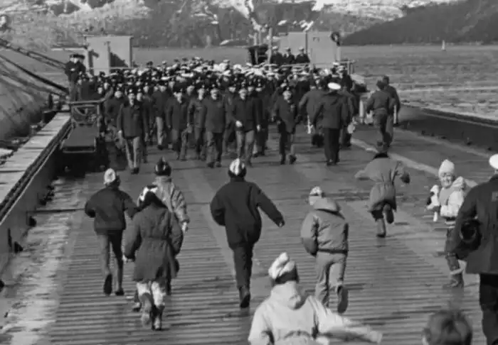 8. Встреча экипажа атомной лодки, которая вернулась на базу после нескольких месяцев плавания