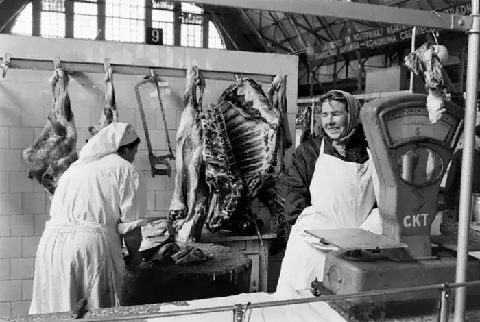 38. Мясной павильон на рынке в СССР, 1960-е годы