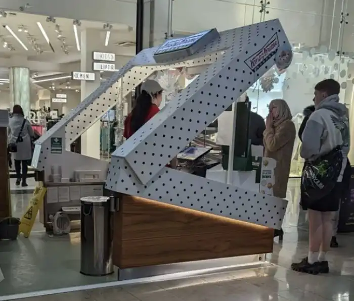 8. Торговая точка ресторана Krispy Kreme, продающего сладости, в форме коробки