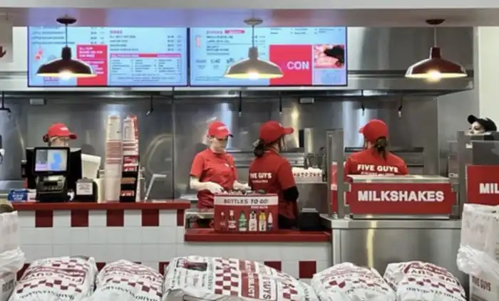 9. Пять девушек обслуживают посетителей в заведении Five Guys (Пять парней)