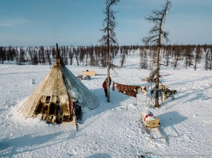 В стойбище есть генератор, но его включают на несколько часов в сутки, когда вся семья собирается вечером вместе. А у некоторых даже телевизоры и спутниковая тарелка на ближайшей лиственнице.