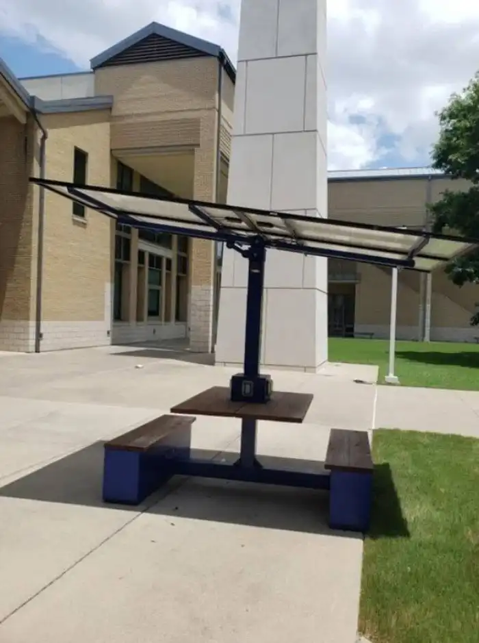Вместо навеса используются солнечные батареи, а с их помощью работают встроенные в стол зарядные порты