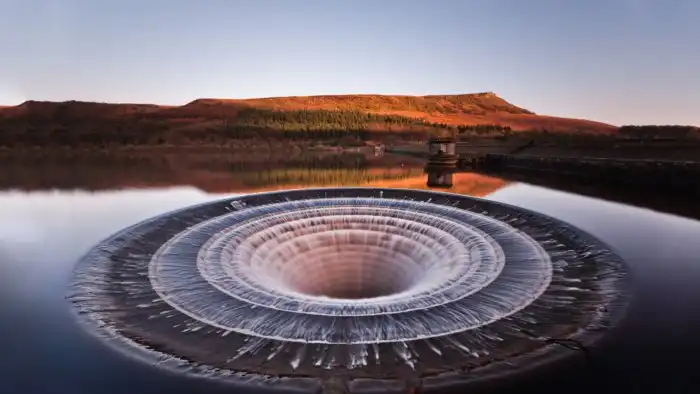 Воронкообразный водослив на водохранилище Ледибауэр, Англия