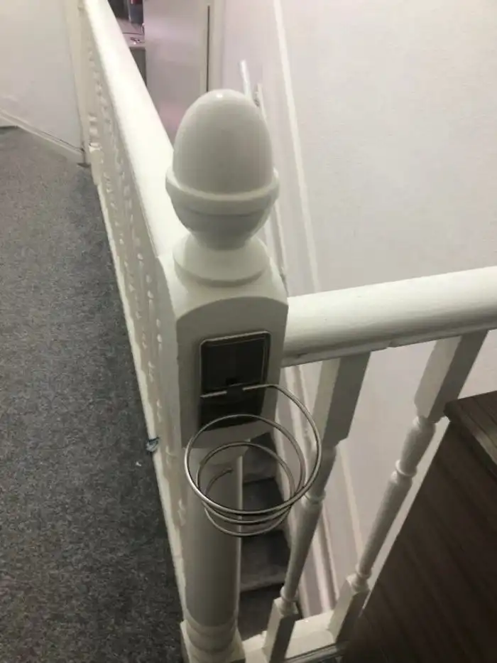 Это похоже на держатель для фена. Но непонятно, почему предыдущие владельцы выбрали для этого такое странное место.