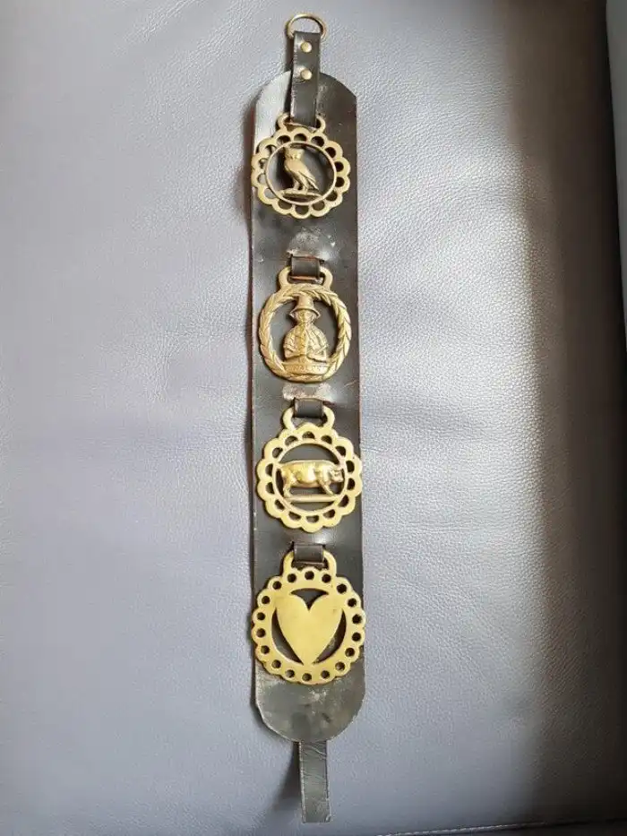 Это латунный ремешок для лошадей, их вешали раньше для украшения.