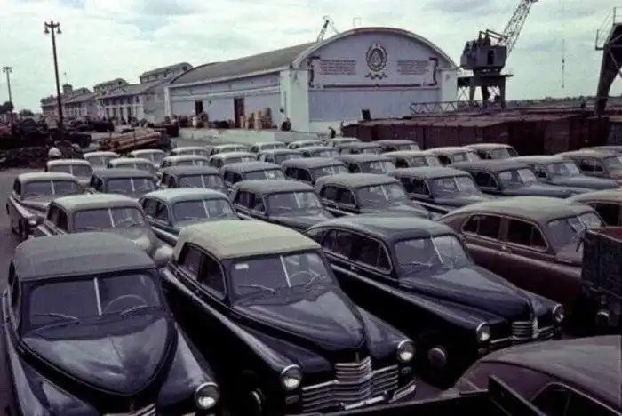 20. Автомобили "Победа" в московском порту. 1956 год