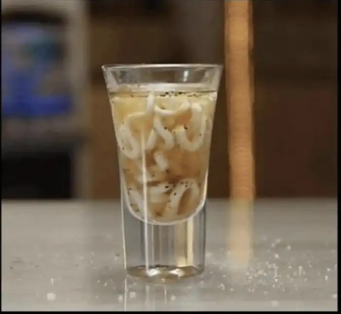 8. Шот "Ленточный червь". Рецепт для любителей жести: 30 мл водки, 30 мл майонеза, пара капель соуса Табаско и щепотка черного перца.