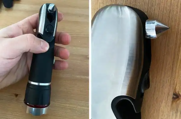 Ответ: это стеклобой — приспособление для разбивания окон в машине, если вы попали в аварию и не можете открыть дверь.