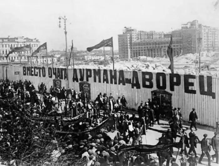 38. Начало стройки на месте снесённого Храма Христа Спасителя в Москве, 1930 год