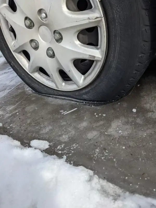 Шина вмёрзла в лёд. Видимо, придётся ждать до весны