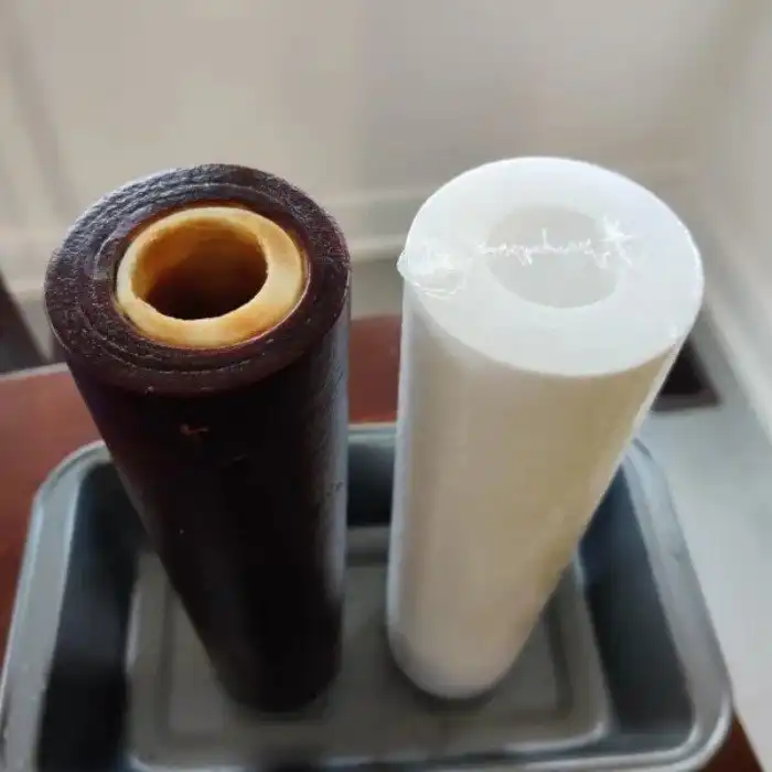 «Домашние фильтры обратного осмоса - новый(справа) и после года службы (слева)»
