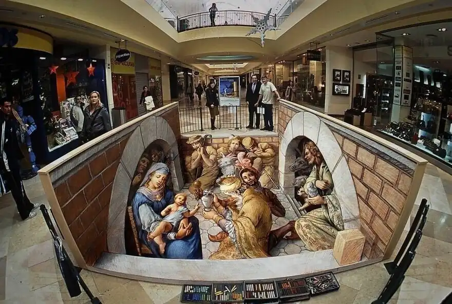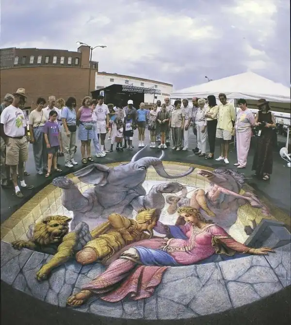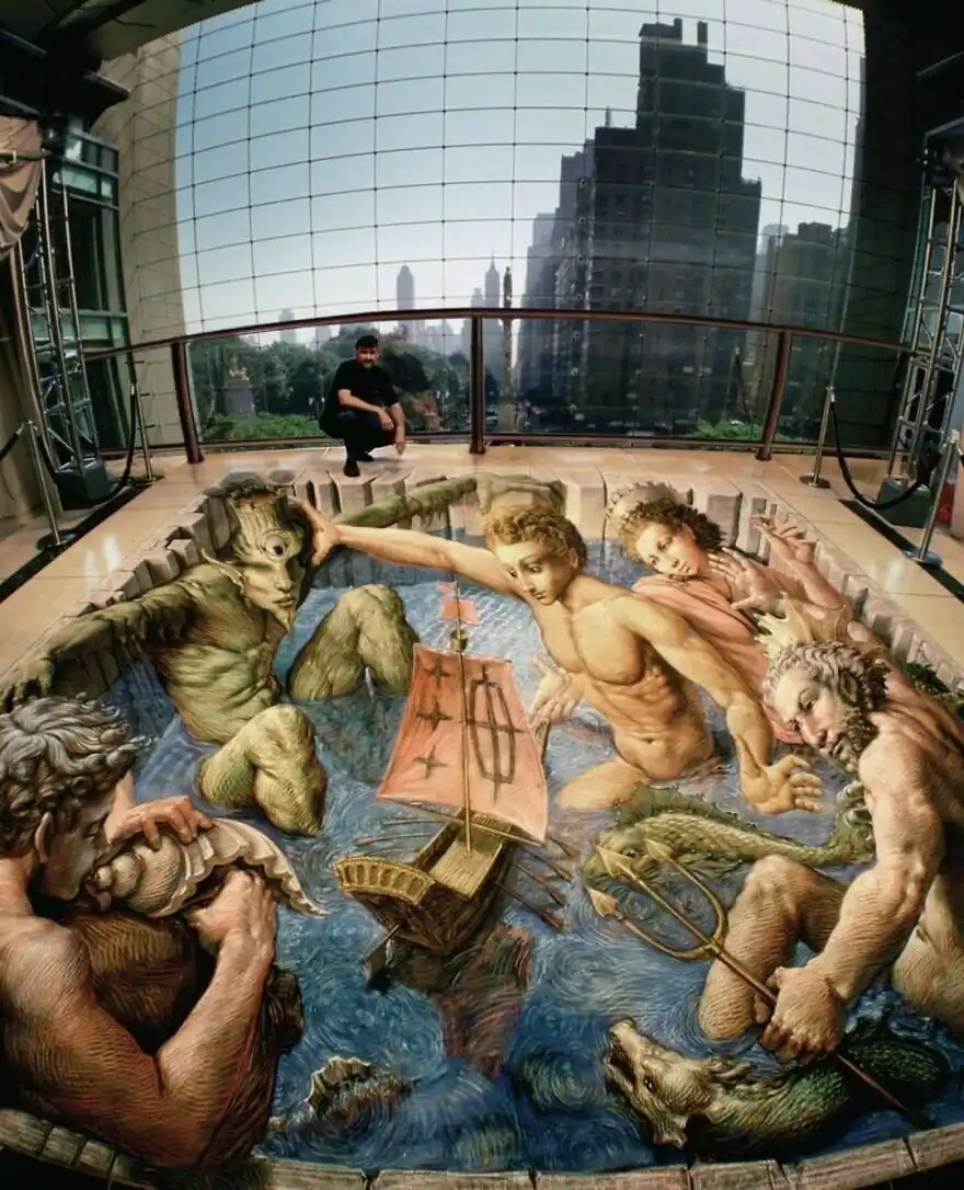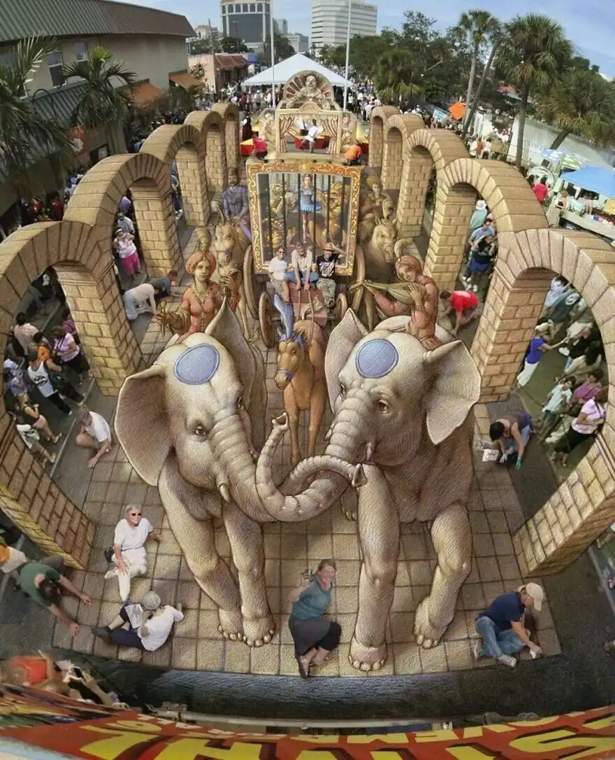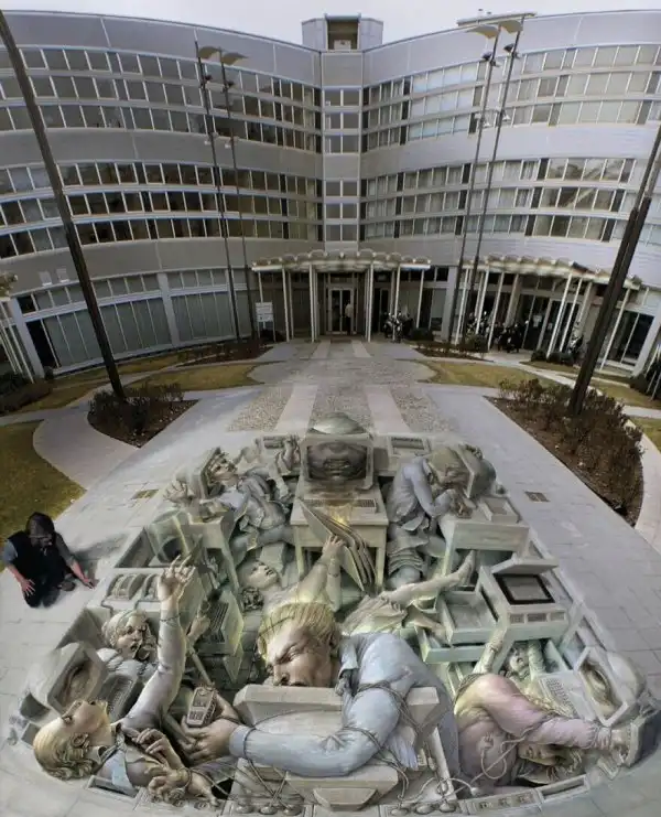 Курт Веннер из Мичигана - иллюстратор и уличный художник, создающий настоящие шедевры 3D-живописи в объемах городских пространств, превращая обычные улицы, скверы, здания, залы и даже автомобили в пространства из иного измерения, завораживающие своей высокохудожественной, детально прописанной реальностью.