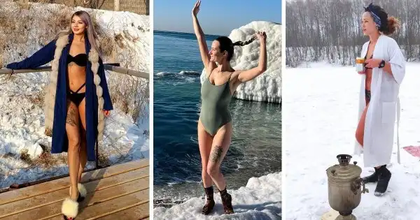 В ночь на 19 января православные люди во всём мире совершали омовения в крещенских купелях. Хотя, кто-то использовал для этого иные водоемы, а кто-то проделывал данный обряд в дневное время суток. В этом посте собраны фотографии красивых девушек, которые разместили в соцсетях свои морозные снимки в купальниках.