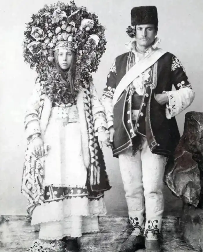 6. Болгарские жених и невеста в день свадьбы, Софийская область, Болгария, 1893 год