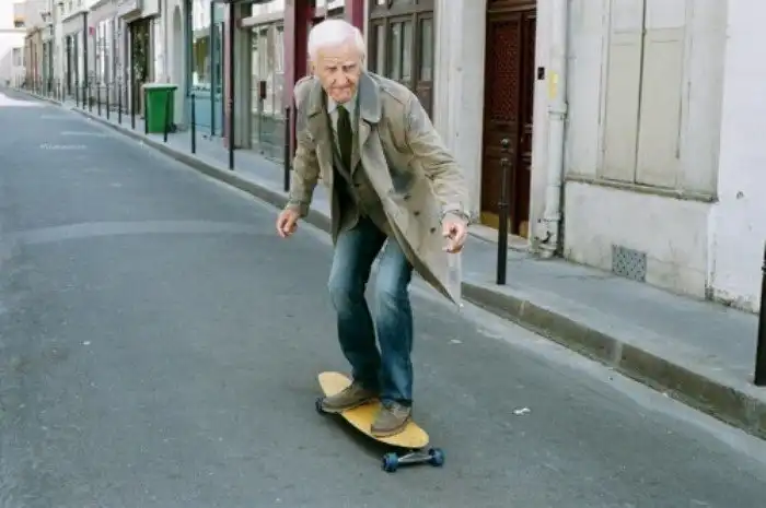 Даже если вам уже за 70, никогда не поздно встать на скейт и исполнить пару трюков, помогая себе зонтиком или тростью! Внуки будут в восторге!