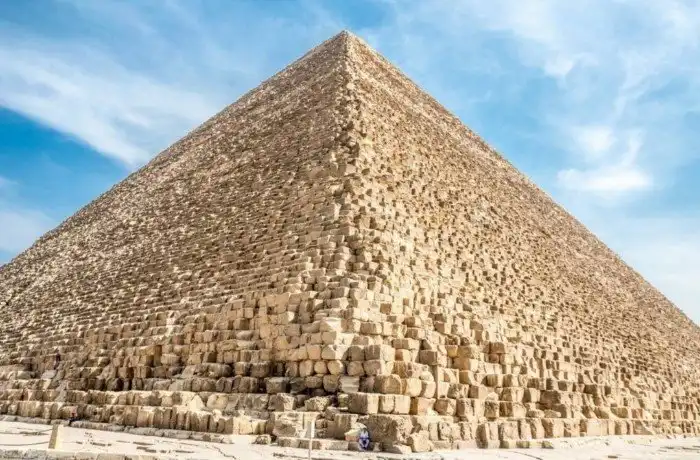 На строительство пирамиды Хеопса ушло 2,3 миллионов известняковых блоков, каждый весом больше 2 тонн. Их добывали в каменоломнях на побережье Нила, а затем на деревянных "санях" тащили к месту строительства