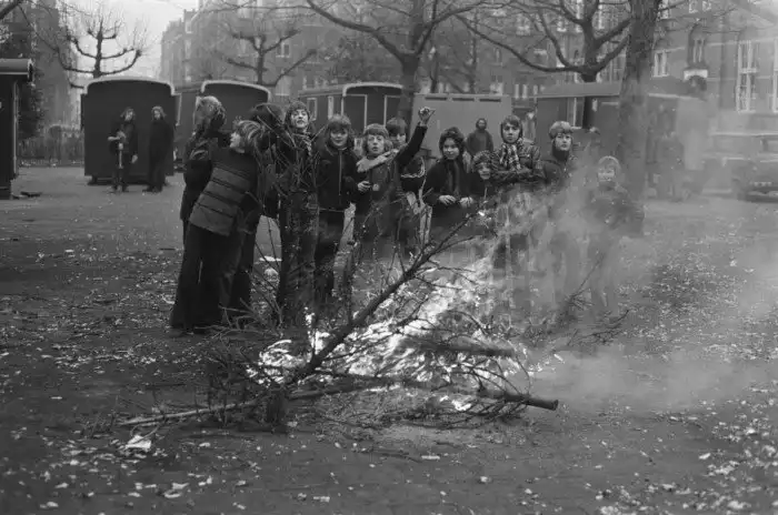 5. 2 января 1973 года. Амстердам. Дети жгут рождественские елки.