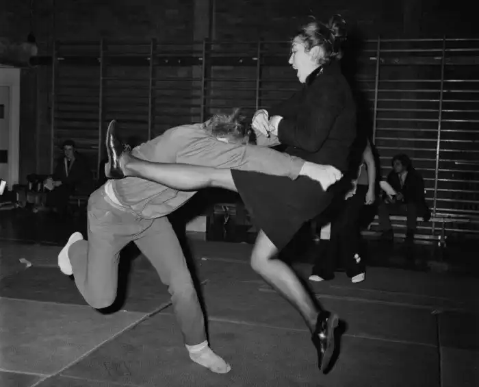 12. 8 января 1973 года. Лондонская полиция демонстрирует приемы самообороны. Фото Douglas Miller.