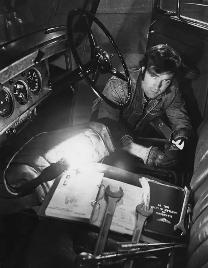14. 9 января 1973 года. Британский актер Майкл Биллингтон ремонтирует свой Bentley. Фото Ian Tyas.