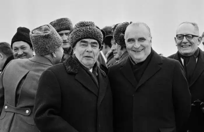 18. 11 января 1973 года. Брежнев и Жорж Помпиду. Фото Henri Bureau.