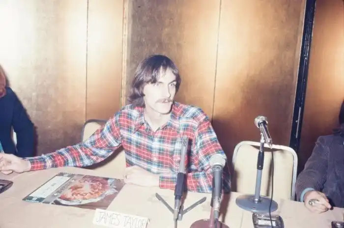 28. Январь 1973 года. Американский музыкант Джеймс Тейлор на пресс-конференции в Токио. Фото Koh Hasebe.