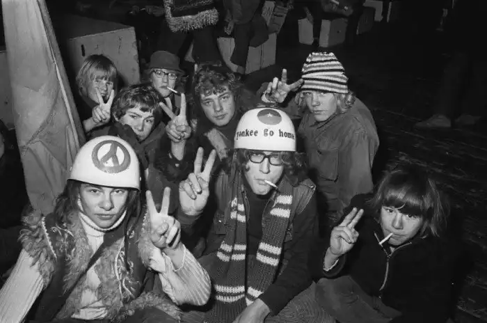 40. 18 января 1973 года. Нидерланды. Студенты бастуют в знак протеста против войны во Вьетнаме.