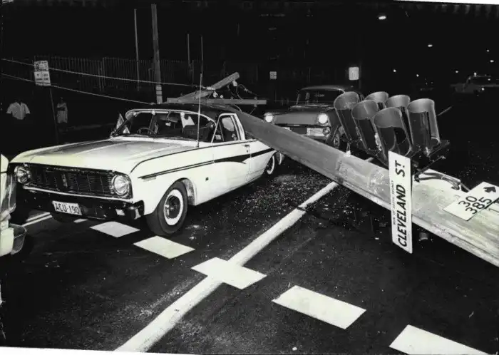 41. 18 января 1973 года. Кливленд. Столб упал на машину. Фото Grahame Roderick Long.