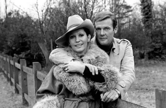 46. Январь 1973 года. Роджер Мур и его жена, актриса Луиза Маттиоли. Фото Anwar Hussein.