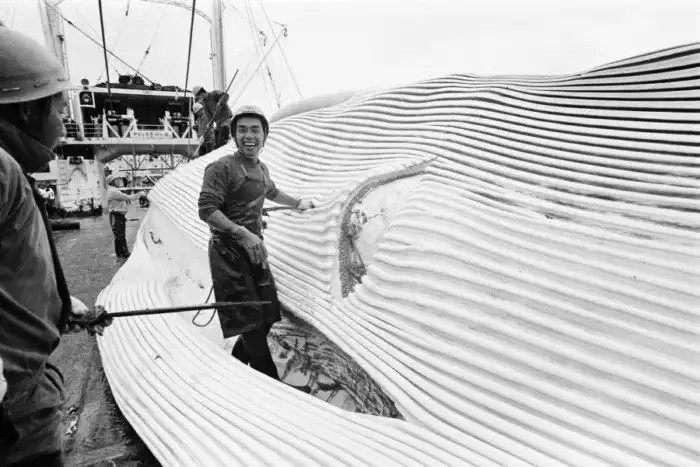 61. 28 января 1973 года. Разделка туши финвала на палубе японского китобойного судна «Дайни Тонанмару».