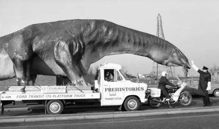 63. 31 января 1973 года. Шотландия. Цетиозавр едет в Доисторический парк. Фото Ron Burton.