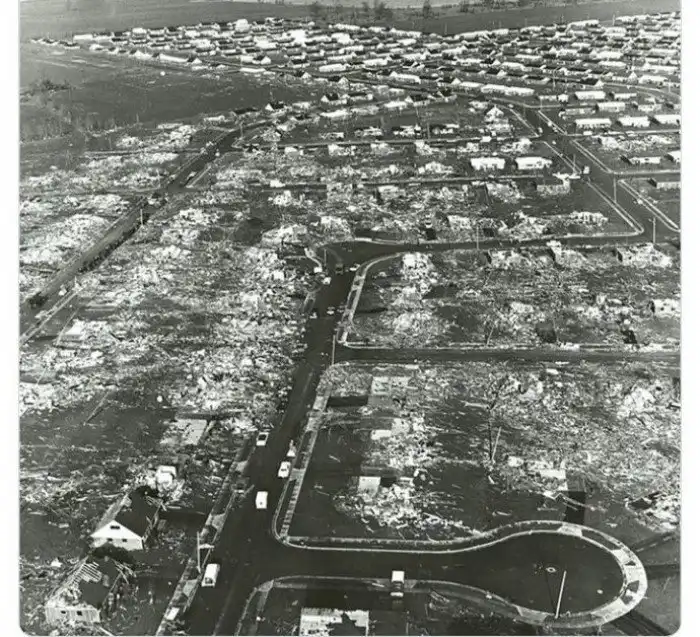 Последствия торнадо в городе Ксениа, Огайо, 3 апреля 1974