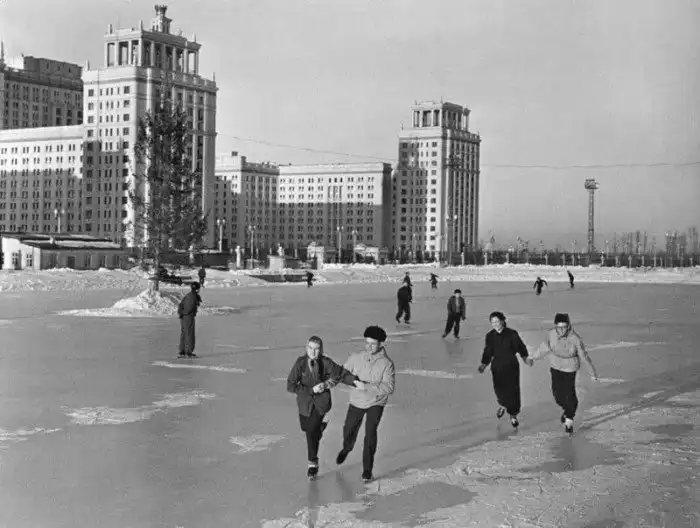 21. Ледовый каток у главного корпуса МГУ, 1955 год
