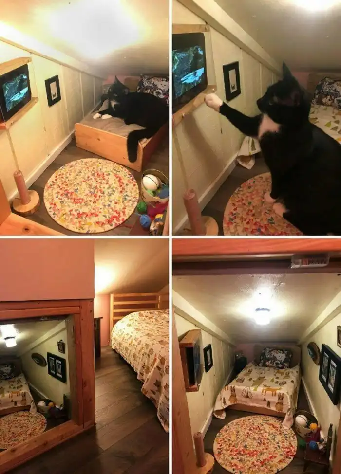 Среди владельцев есть талантливые умельцы, которые создают невероятные шедевры для своих любимцев, чтобы выразить свои чувства к ним. Лестницы, гамаки, целые комнаты и многое другое: предлагаем вам посмотреть, как выглядят самые классные приспособления для животных, изобретение которых точно вывело хозяина на новый уровень. По крайней мере в глазах других хозяев.