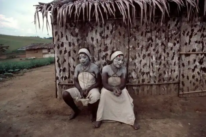 18. Молодые женщины в традиционной белой краске для тела. Город Манджи. Габон. 1984 год. Фото Бруно Барби