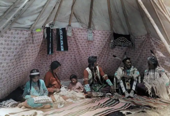 27. Семья индейцев в своем жилище, типи. Монтана, 1927 год. Автор фото Эдвин Л. Вишерд