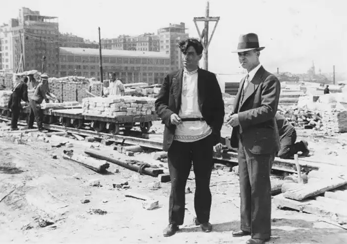 28. Американский архитектор Гектор Гамильтон на строительной площадке Дворца Советов. 1932 год